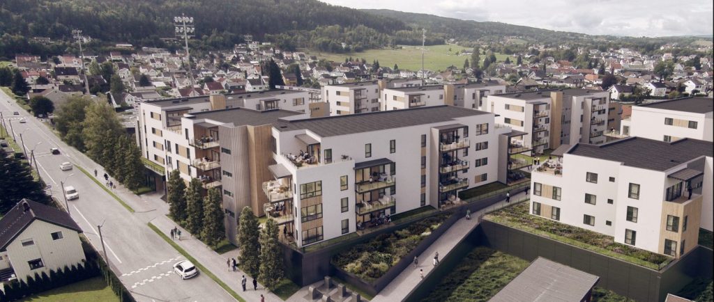Det sier Peter Fjerdingby i membranspesialisten Litex, der han står og betrakter det imponerende lelighetsprosjektet 3050 Stadionkvartalet, vegg i vegg med hjemmebanen til Nedre Eikers fotballstolthet Mjøndalen IF.