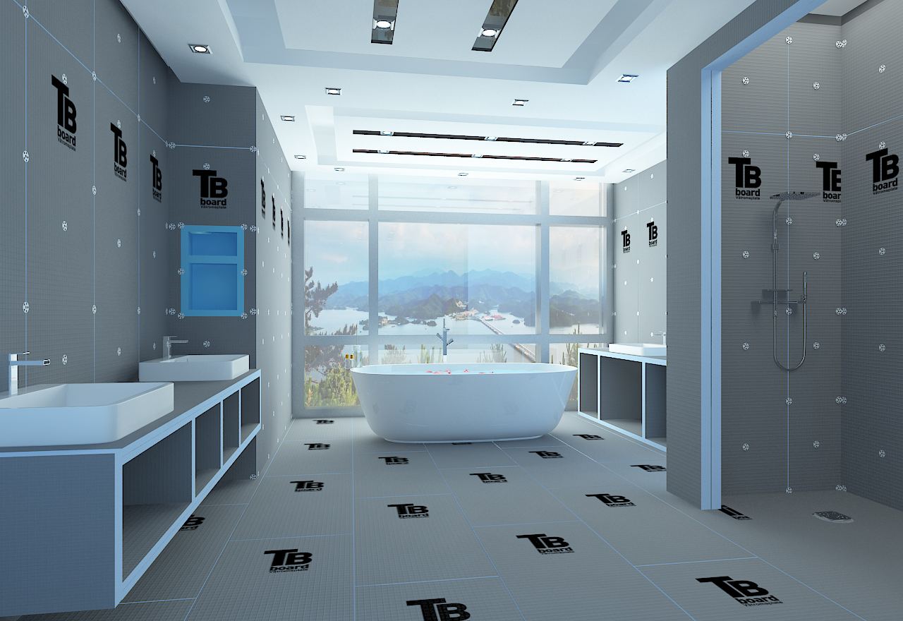 TB Board Våtromsplater har lang levetid og egner seg like godt til nye konstruksjoner som til rehabilitering. På bad og våtrom skal platene dekkes med flis eller murpuss.